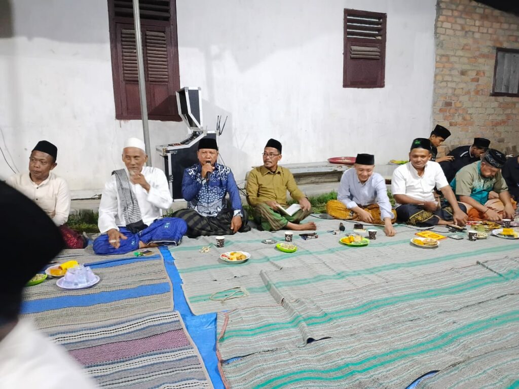 Pembacaan Al-Barzanji diawali dengan pembukaan dan sambutan dari Bapak Kepala Desa yang menyampaikan pentingnya menjaga tradisi keagamaan sekaligus memperkuat nilai-nilai spiritual dalam kehidupan sehari-hari. Suasana kegiatan berlangsung khidmat dan penuh kekeluargaan, dengan lantunan shalawat serta doa-doa yang dipanjatkan bersama.